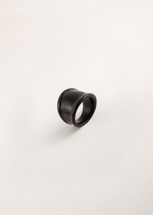 Muted Ridge Ring in Black Buffalo Horn with Silver Inlay