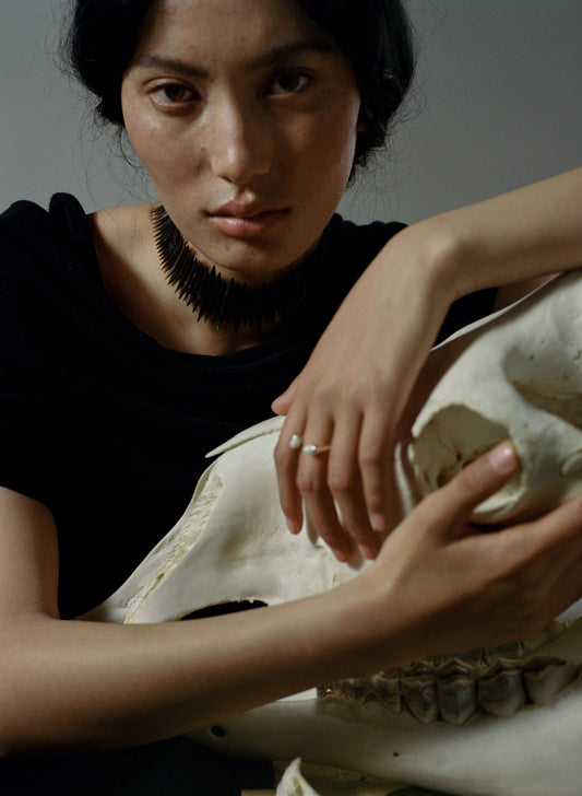 Curl Ring with Silver Rivets in Black Buffalo Horn